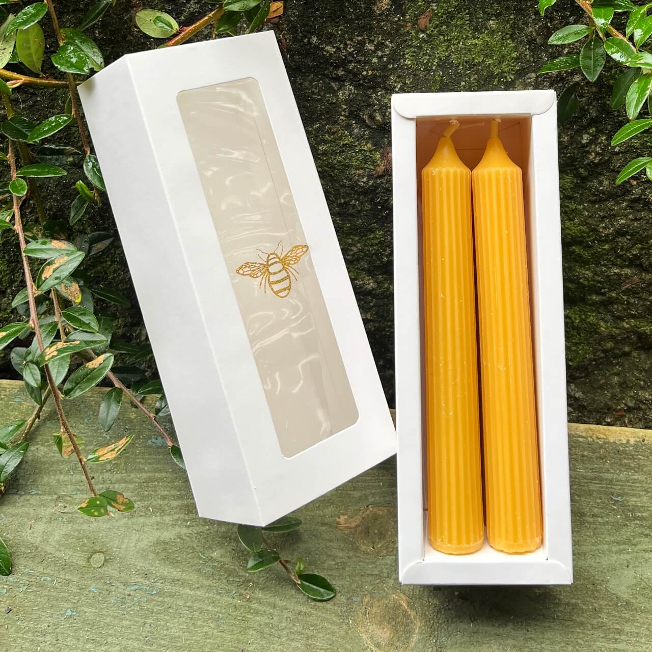 Bivokslys brenner rolig og lenge, med minimalt med sot, og sprer en mild, naturlig duft av honning. De leveres i en vakker gaveeske med vindu og preget bieillustrasjon – ideelle som gave til en du er glad i, eller som et bærekraftig innslag i egen stue.