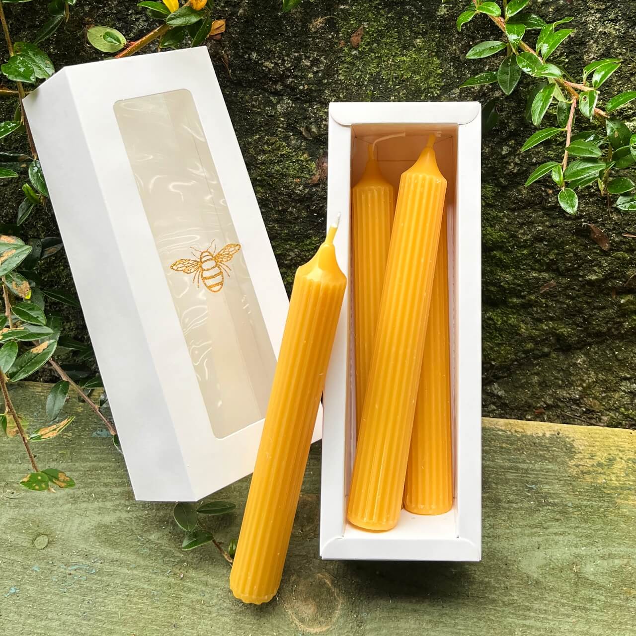Disse stripete bivokslysene er et naturlig og miljøvennlig alternativ til parafinlys – et bærekraftig valg som gir både varme og ro i hjemmet.