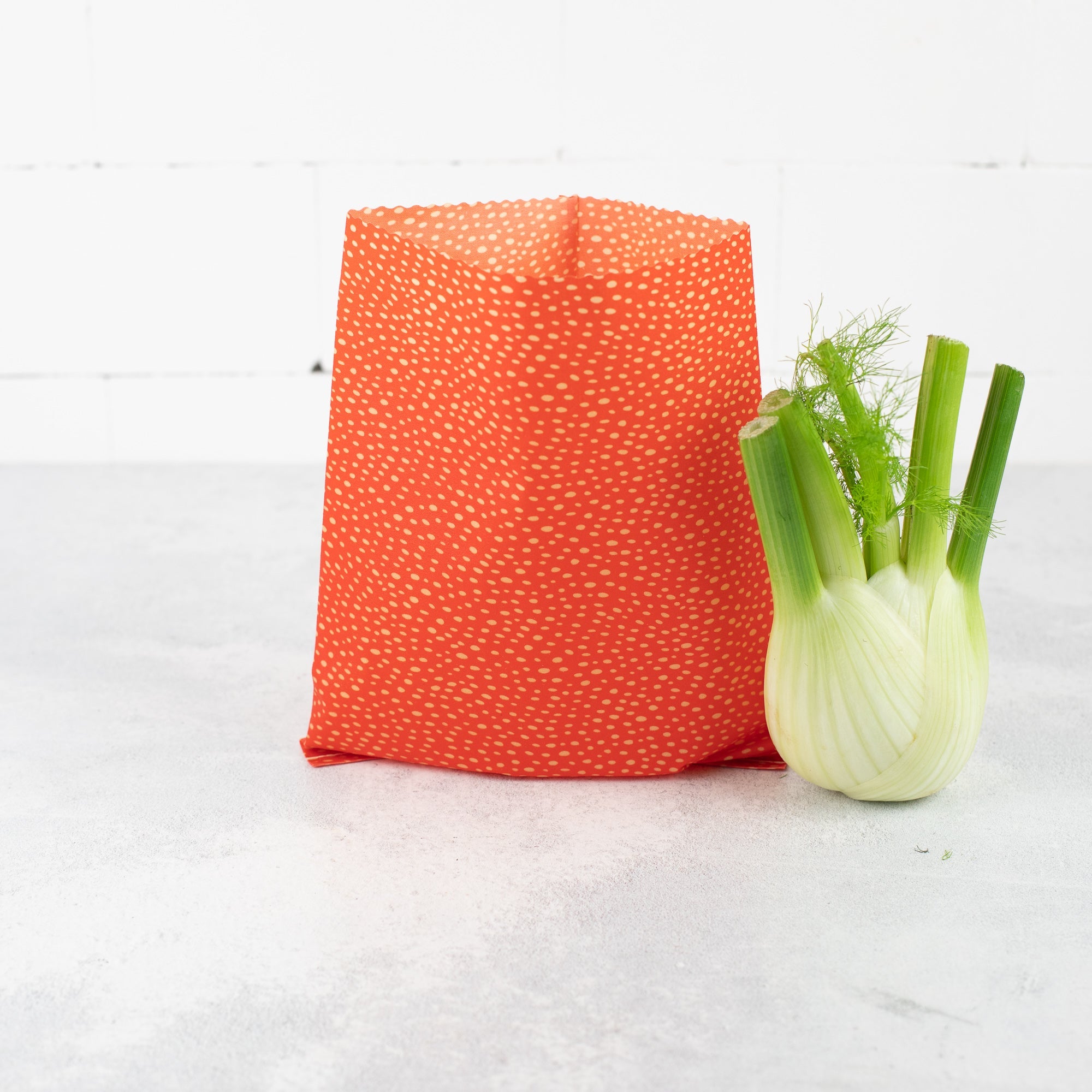 Den økologiske bivoksposen er ideell for å fylle små med snacks som bær, frukt, nøtter og kjeks, samt snacks på farten. Med bivoksposen kan du ta lunsjen plastfri og den holder seg fersk lengre. Posen kan brettes sammen etter bruk og veier nesten ingenting i veska/sekken.