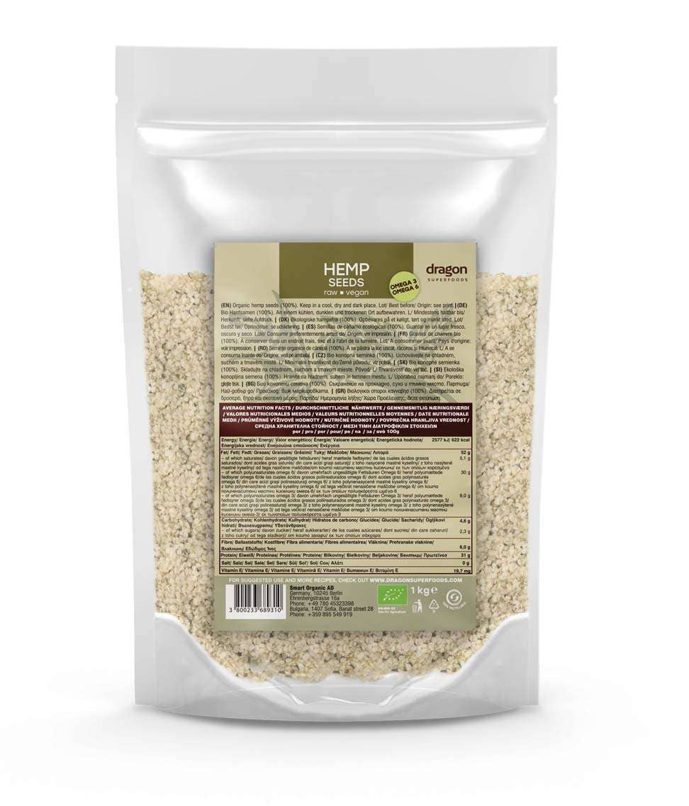 Dragon Superfoods økologiske hampfrø er skånsomt avskallet ved lav temperatur, uten bruk av kjemikalier. Denne prosessen bevarer frøenes naturlige innhold av omega 3, omega 6 og vitamin E, samt det ideelle forholdet mellom omega 3 og omega 6.