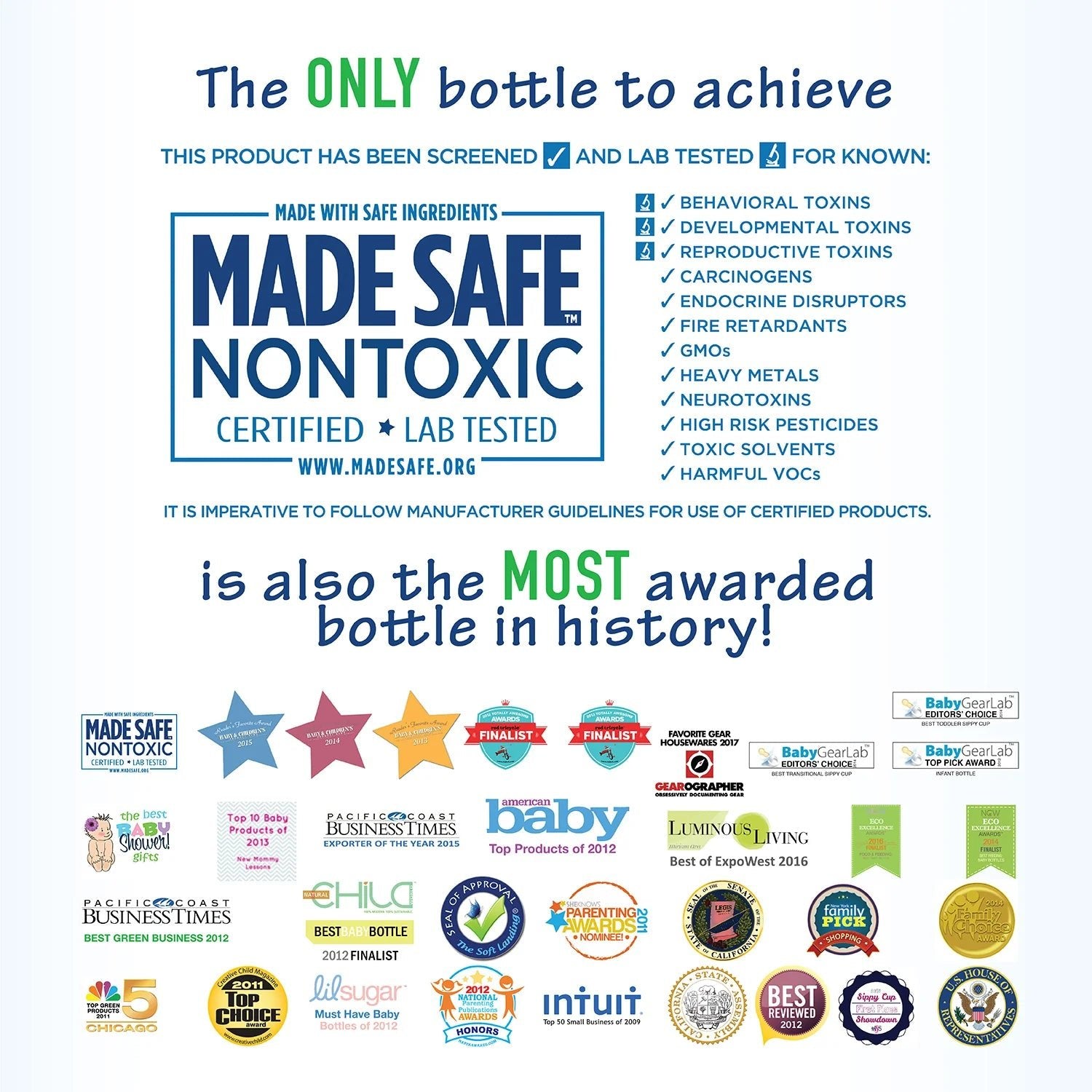 BPA-fri, BPS-fri, PP-fri, ftalater, polyvinylklorid (PVC), petrokjemikalier og blyfri og vil ikke frigjøre giftstoffer som plastflasker og korker fordi Pura-flasker ikke inneholder plast!