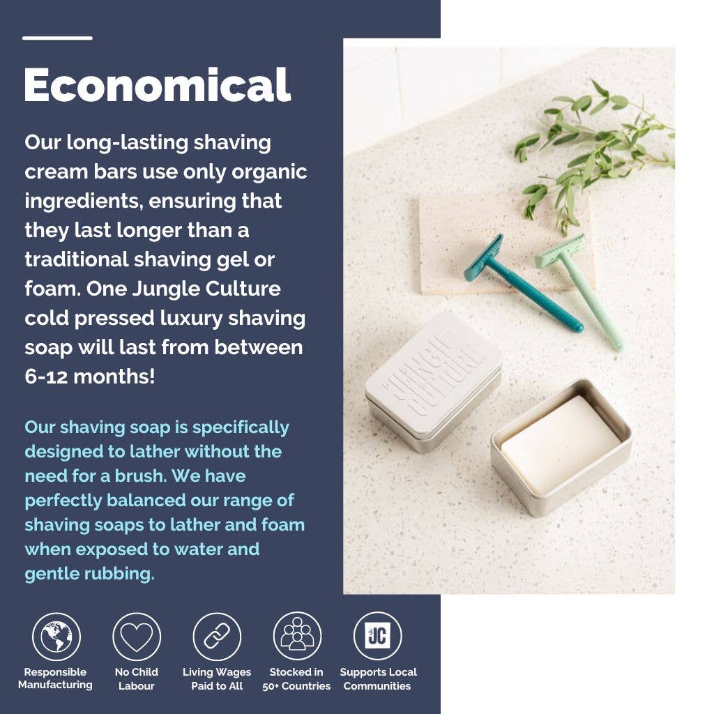 Jungle Culture sine faste barbersåper er håndlaget av dyktige såpemakere i Vietnam, med fokus på kvalitet, hudpleie og bærekraft. Disse barbersåpebarene er laget med lokalt produsert, økologisk kokosolje og nøye utvalgte eteriske oljer som gir et rikt, kremet skum og en behagelig barbering.